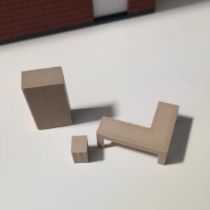 - Hebebühne, unterteilt in das Gestell, die Arme, konfigurierbare Abstandhalter (geklebt/gesteckt möglich, wäre dann beweglich allerdings mit der Ladestation nicht zu empfehlen)